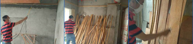 1、開工前對(duì)所有可能與木料接觸的墻體部位進(jìn)行噴藥(具體指窗套、門套、墻裙、堤角線、各類柜子與墻接觸的墻面);墻體無(wú)木料部位噴1米以下!